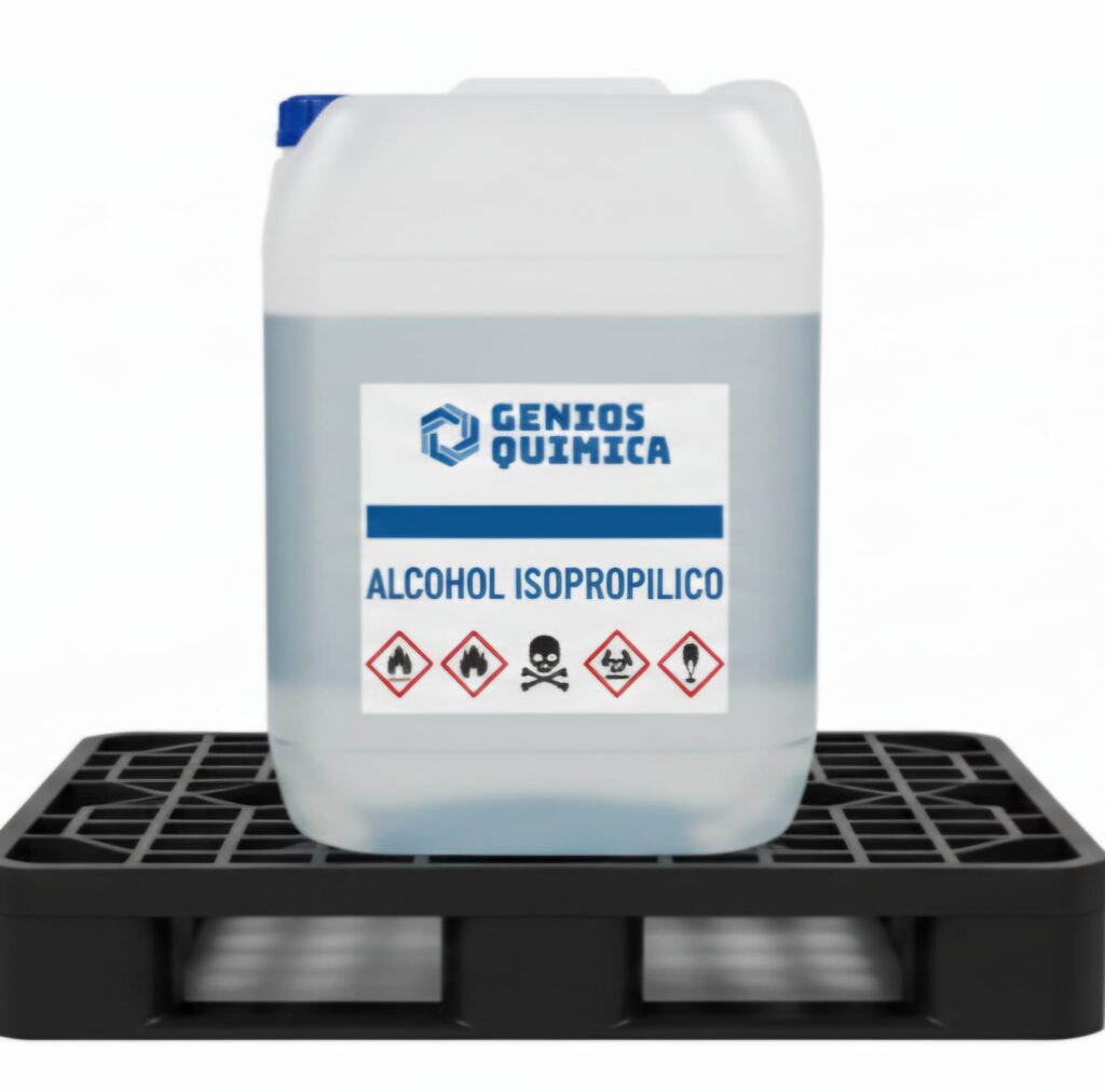 Alcohol Isopropílico, es un solvente incoloro flamable de olor fuerte, este es utilizado en la manufactura de muchos productos químicos y en la industria también como un ingrediente común en productos como: antisépticos, desinfectantes y detergentes. Tiene muchas aplicaciones como disolvente y limpieza de tintas, etc.
