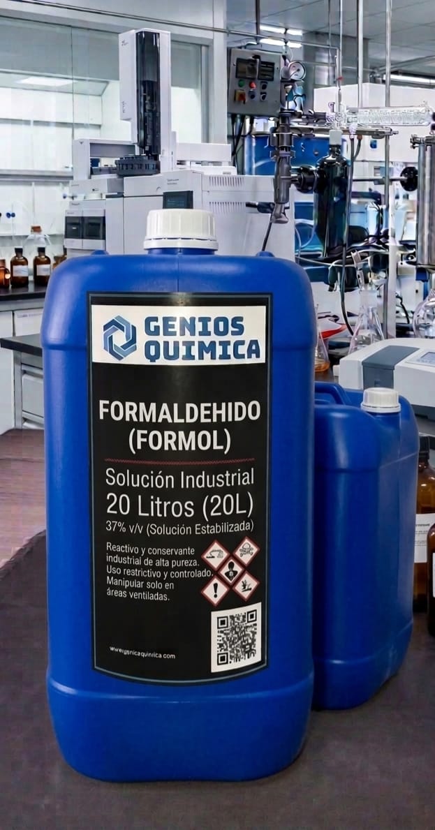 Solución acuosa de formaldehído al 37–40%, incolora y de olor penetrante, utilizada como desinfectante, conservador y en la producción de resinas y plásticos.